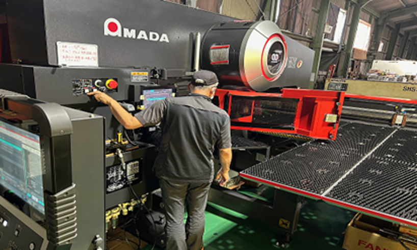 タレットパンチプレス、パワープレス(110トン・60トン・35トン)、ブレーキプレス(35トン×125)、シャーリングマシン(25T)、タッピングマシン、ボール盤、ベンディングマシン